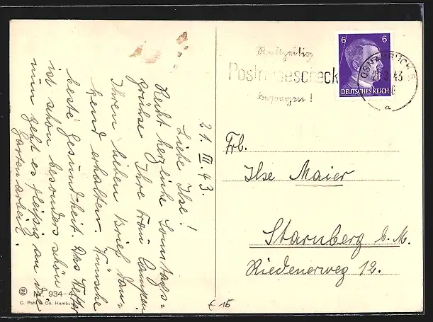 alte Ansichtskarte, gelaufen 1943, guter Zustand