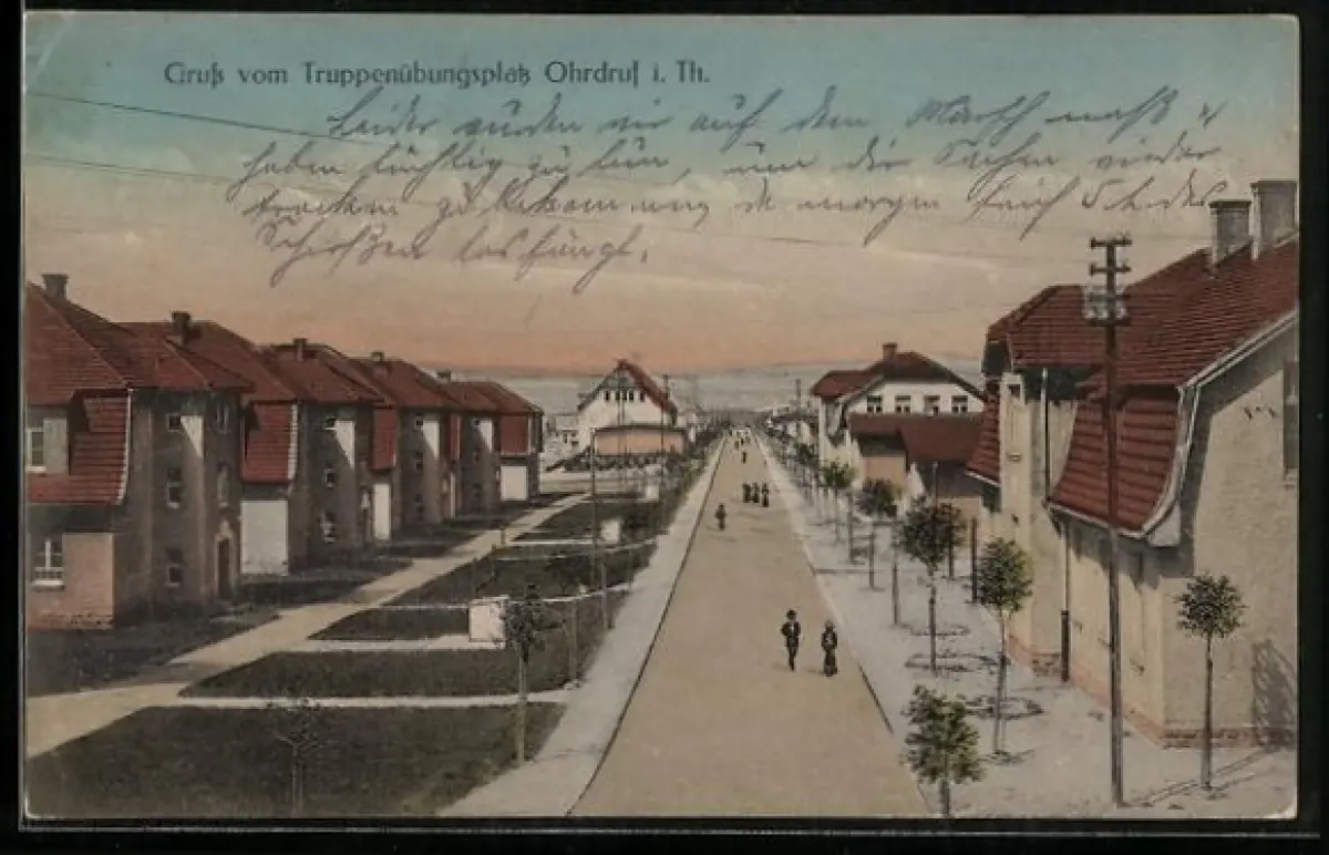 AK Ohrdruf i. Th., Strassenpartie mit Wohnhäusern, Truppenübungsplatz