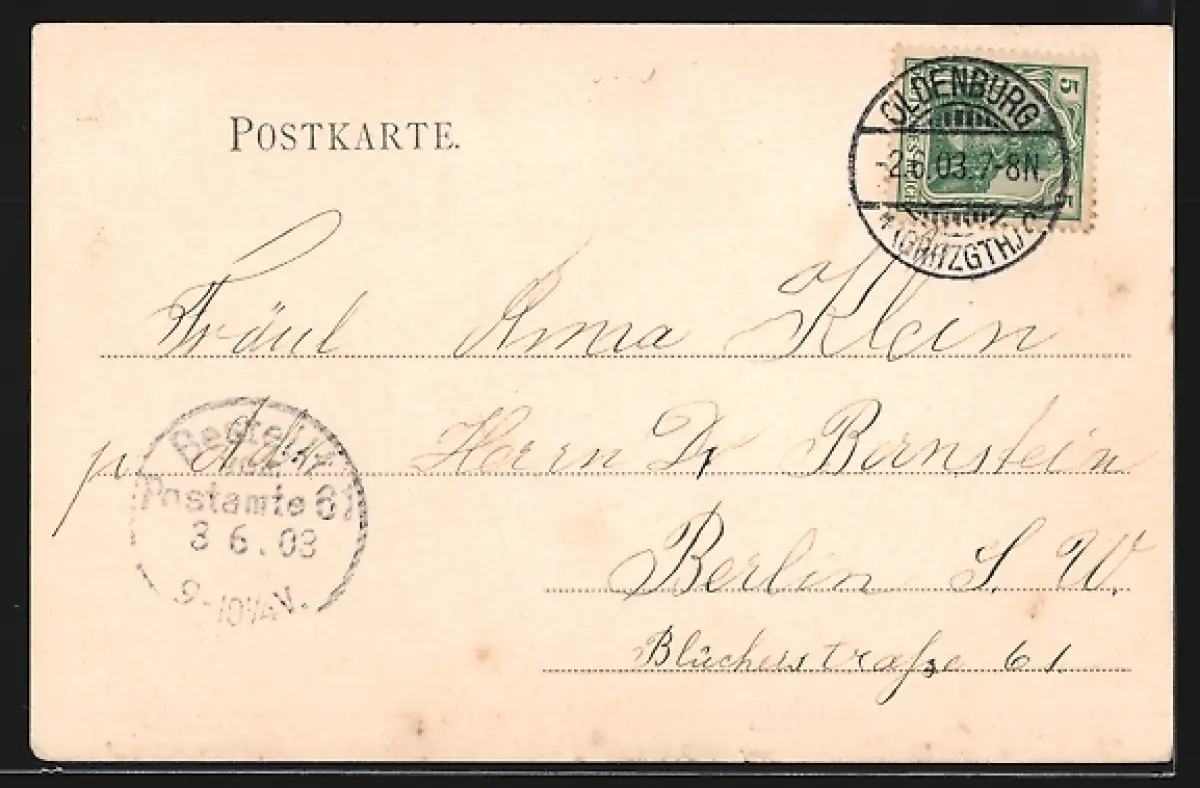 alte Ansichtskarte, gelaufen 1903, guter Zustand