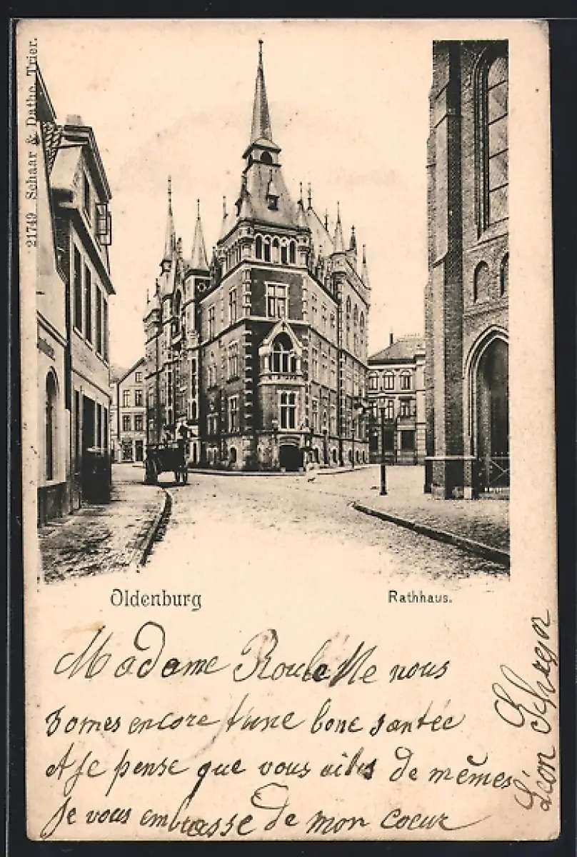 AK Oldenburg / Gr., Strassenblick auf das Rathaus
