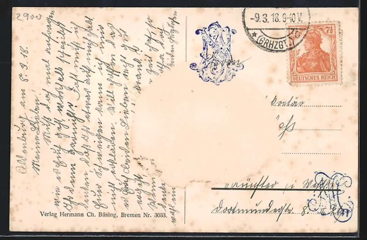 alte Ansichtskarte, gelaufen, rückseitig Oberflächenschaden, guter Zustand