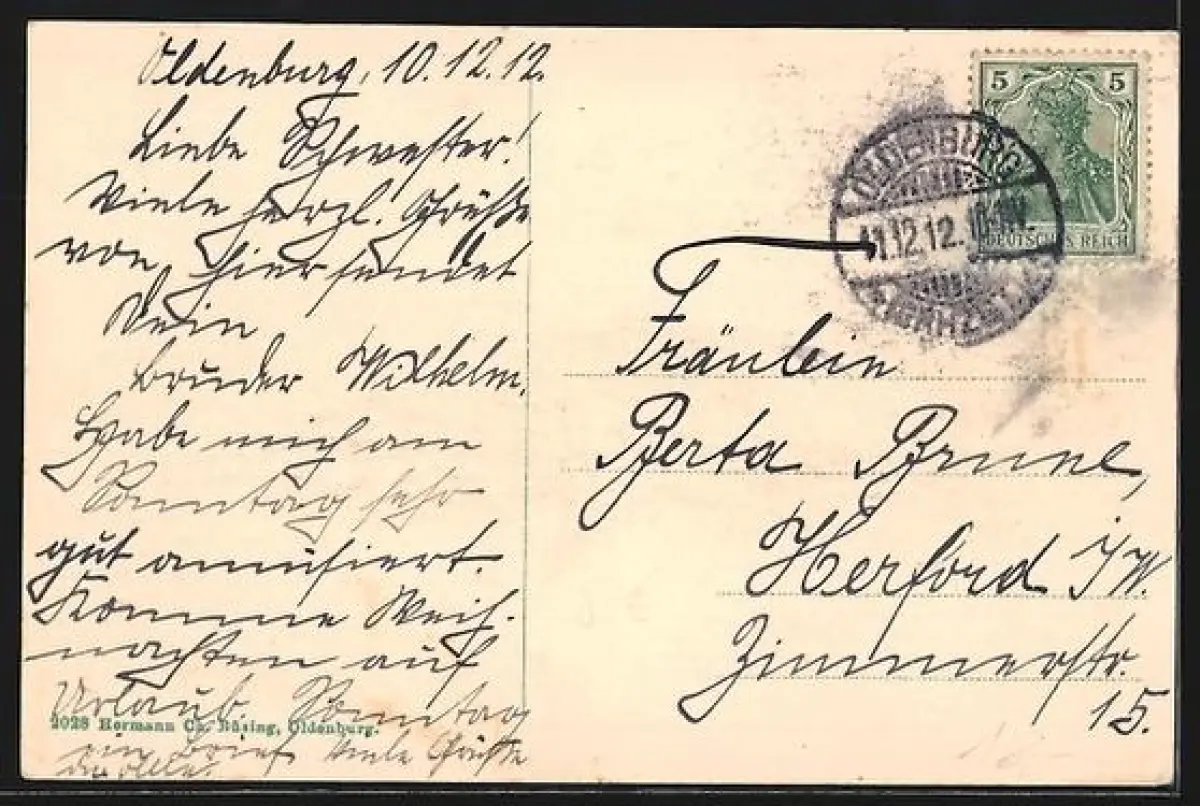 alte Ansichtskarte, gelaufen 1912, Eckknicke li. oben u. re. unten, Stempelspur, guter Zustand