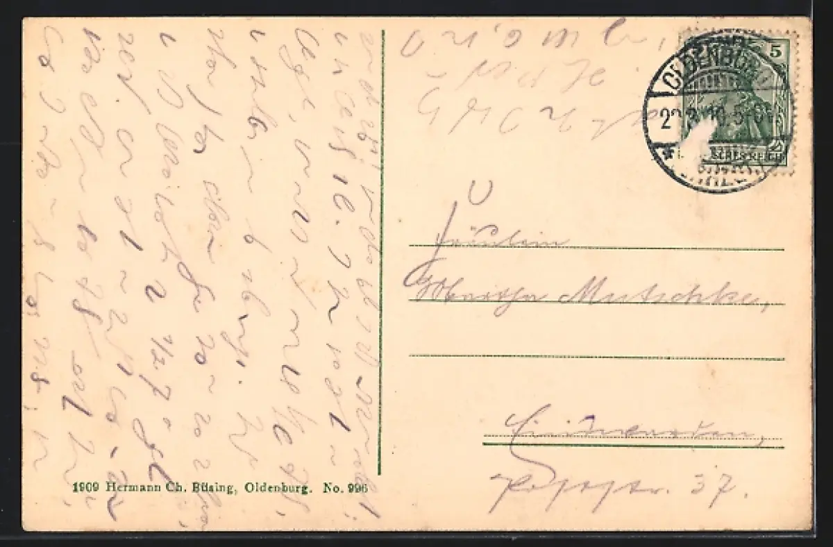 gelaufen 1910, Briefmarke entfernt, rückseitig Oberflächenschaden, guter Zustand