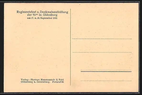 AK Oldenburg / O., Regimentsfest und Denkmalenthüllung der 91er 1921, Ansprache v. Hindenburg