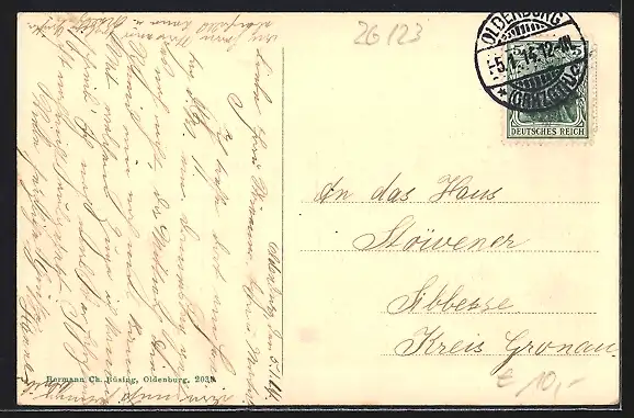 alte Ansichtskarte, gelaufen 1914, Stempelspur, guter Zustand