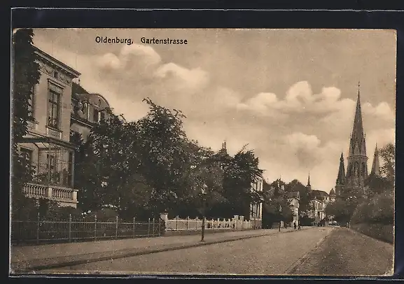 AK Oldenburg / Oldenburg, Gartenstrasse mit Blick zur Kirche