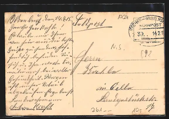 alte Ansichtskarte, gelaufen 1915, Eckknick li. unten, guter Zustand