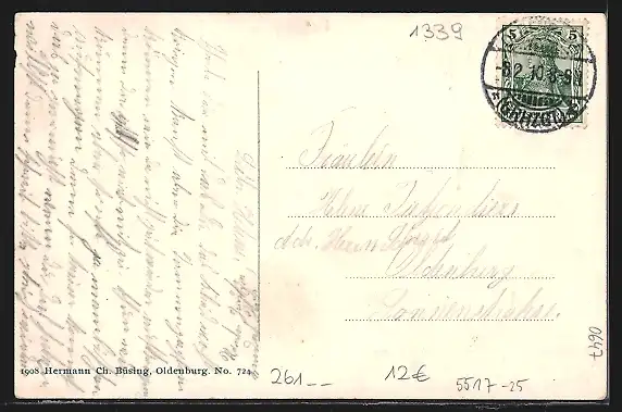 alte Ansichtskarte, gelaufen 1910, guter Zustand