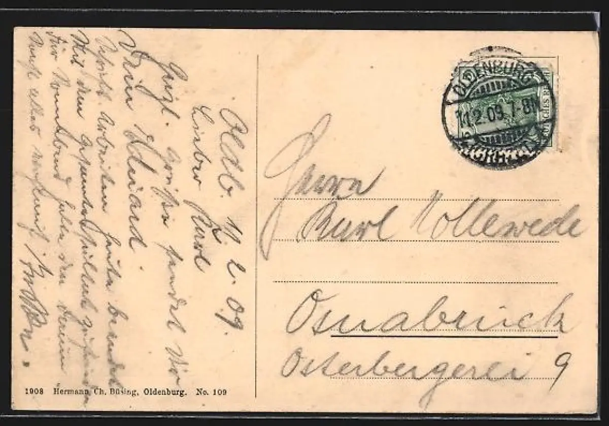 alte Ansichtskarte, gelaufen 1909, guter Zustand