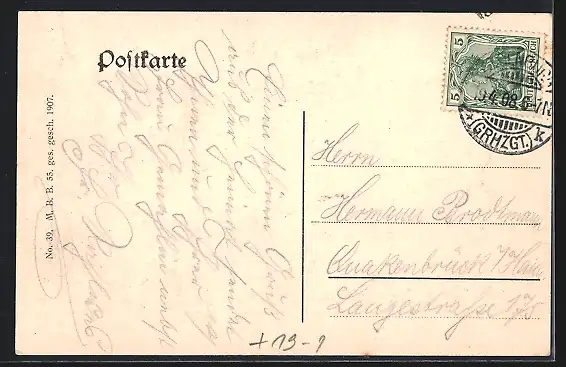 alte Ansichtskarte, gelaufen 1908, guter Zustand