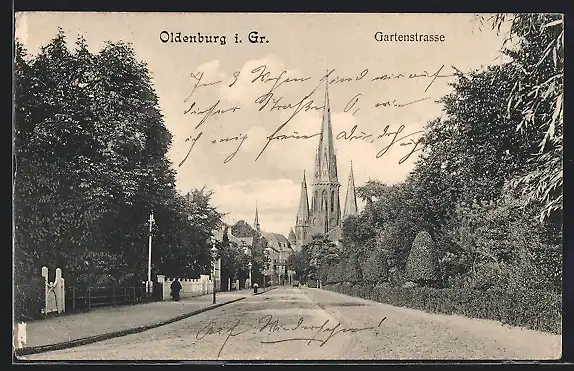 AK Oldenburg i. Gr., Gartenstrasse mit Blick zur Kirche