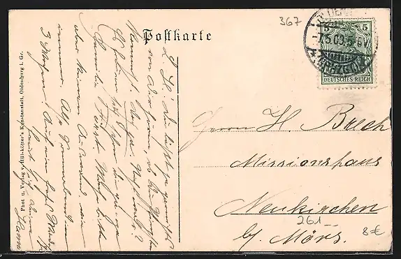 alte Ansichtskarte, gelaufen 1909, leichte Abriebspuren und minimale Kantenschäden li., guter Zustand