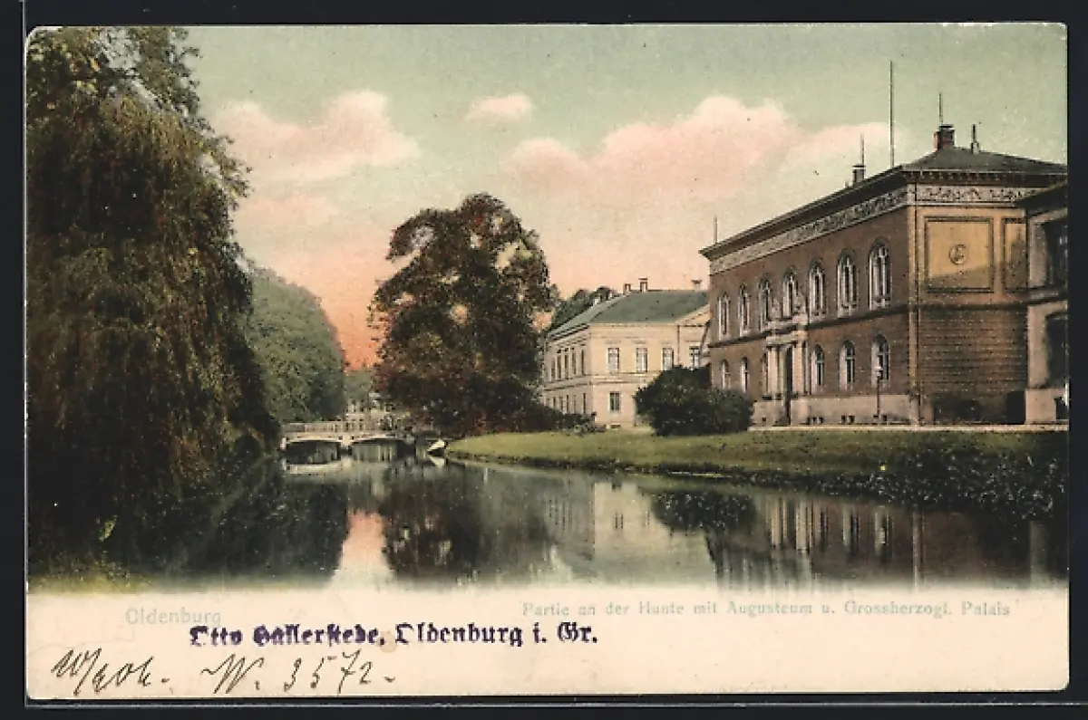 AK Oldenburg i. Gr., Partie an der Hunte mit Augusteum u. Grossherzogl. Palais, Elisabethstrasse