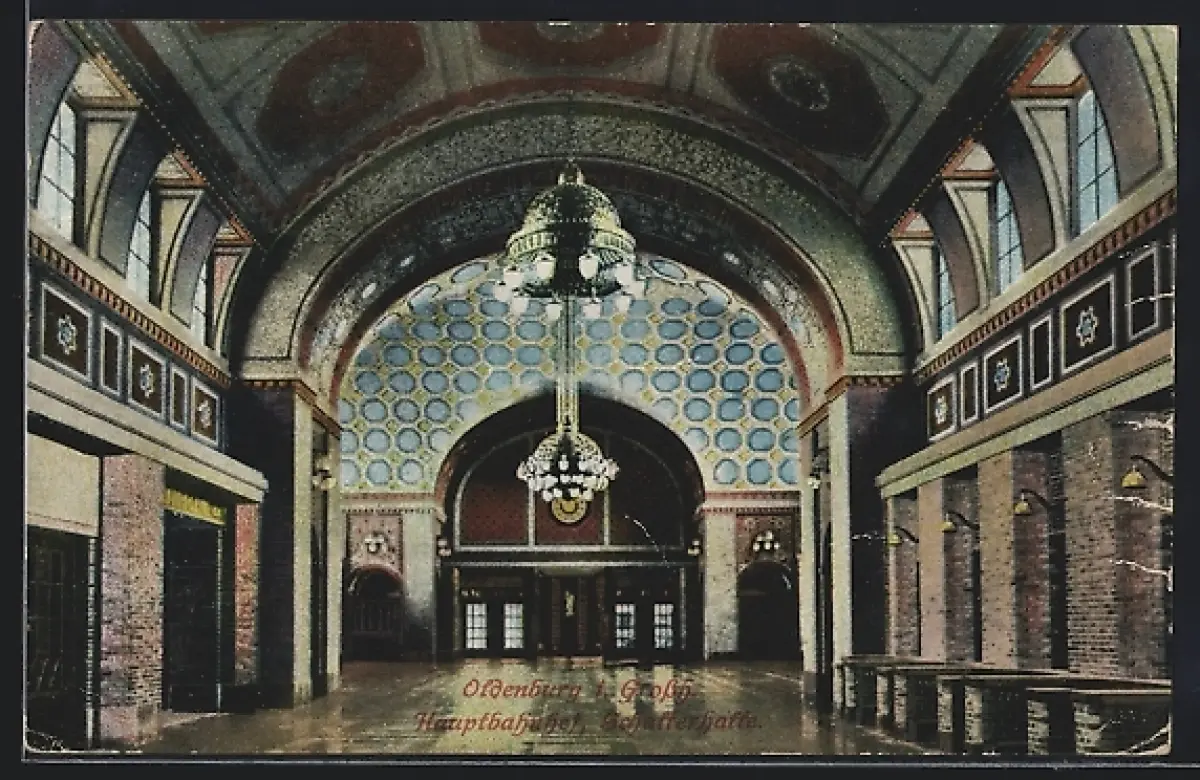 AK Oldenburg, i. Grossh., Hauptbahnhof, Schalterhalle, Innenansicht