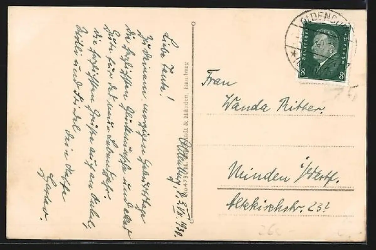 alte Ansichtskarte, gelaufen 1930, guter Zustand