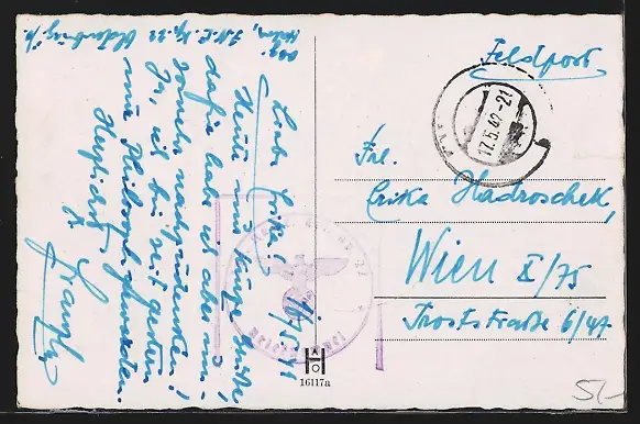 gelaufen 1942, Einriss li. mittig, guter Zustand