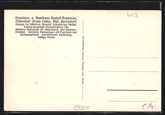 AK Oldendorf /Kreis Celle, Pensions- u. Gasthaus Rudolf Brammer, Brücke, Uferpartie