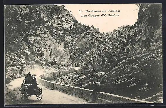 AK Ollioules, Les Gorges d`Ollioules avec calèche sur la route sinueuse