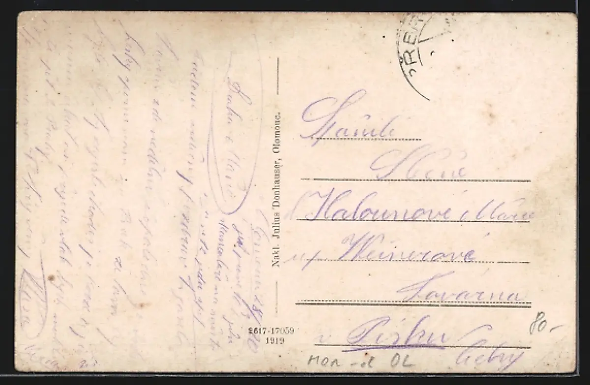 alte Ansichtskarte, gelaufen 1920, Briefmarke entfernt, rückseitig Oberflächenschaden, Eckknicke links u. rechts, guter Zustand