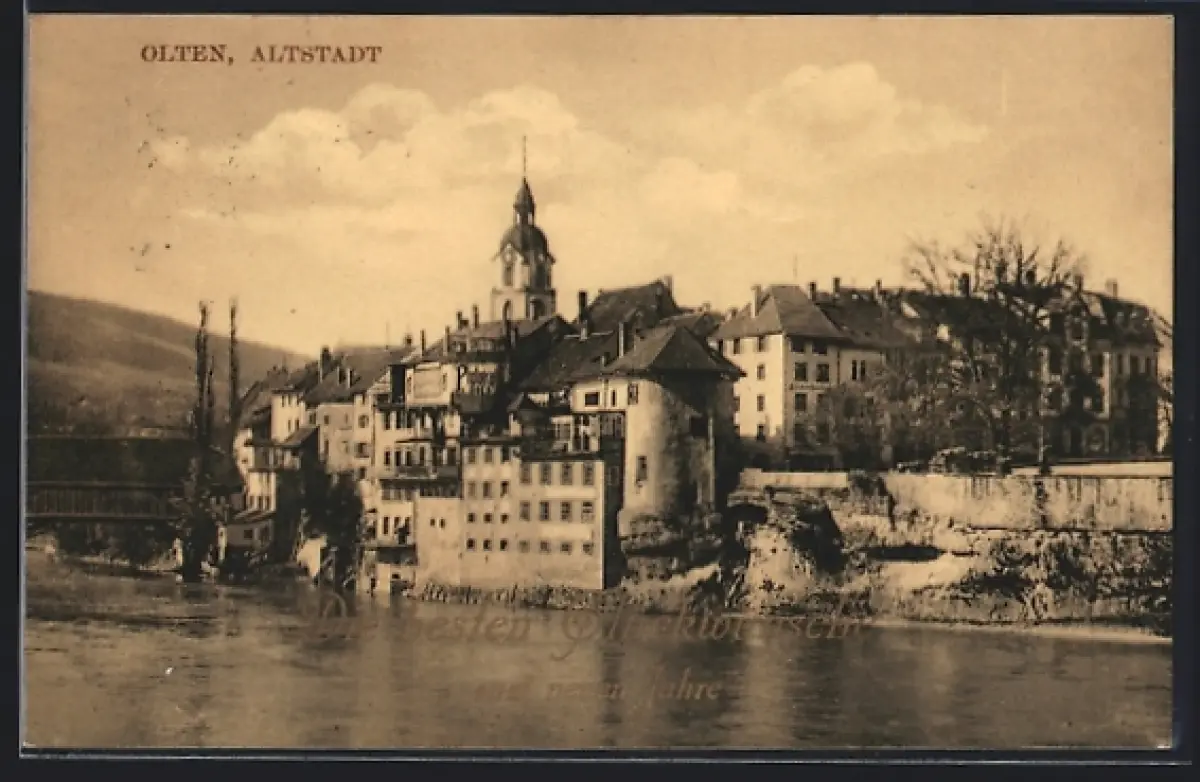 AK Olten, Altstadt, Ansicht vom Wasser, Neujahrsgruss