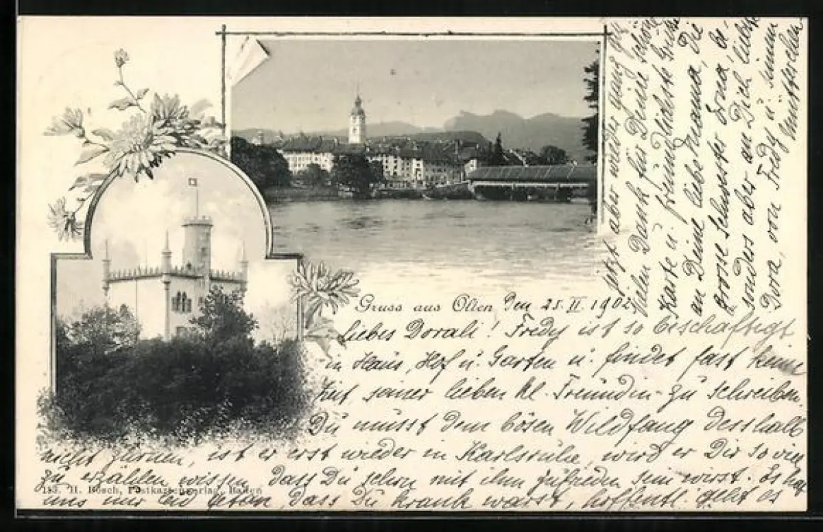 AK Olten /SO, Sälischlössli, Ortsansicht, Passepartout mit Astern
