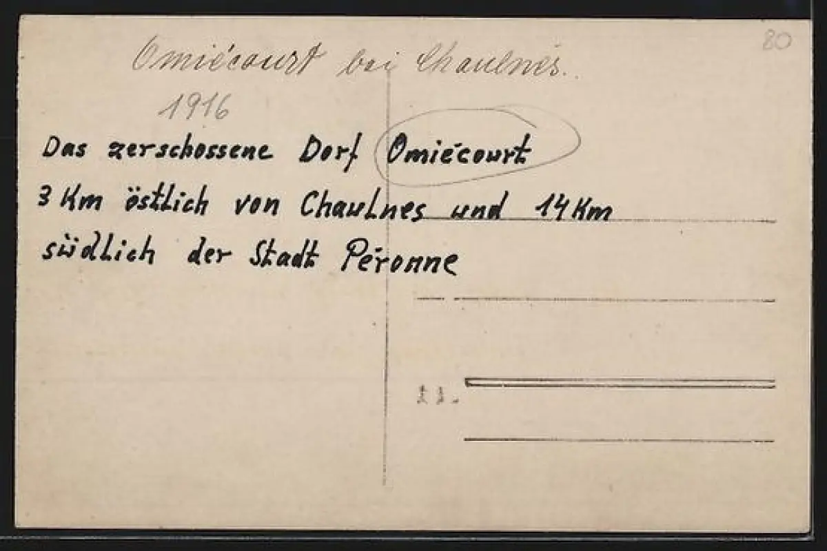 AK Omiecourt /Chaulnes, Le village détruit après les combats de 1916