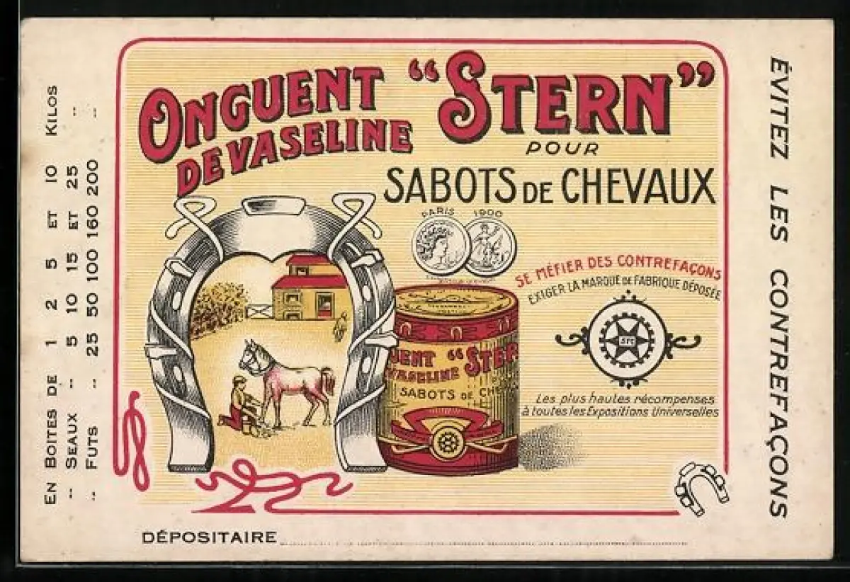 AK Onguent Stern de Vaseline pour Sabots de Chevaux, Reklame, Hufschmied versorgt ein Pferd