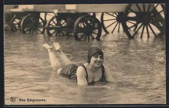 AK Oostende, Onze mooie Baadsters, Dame in Bademode räkelt sich am Ufer