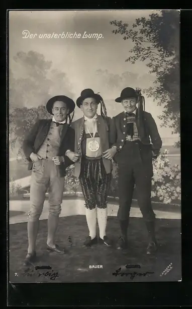 AK Operette Der unsterbliche Lump, Herren in Tracht, Darsteller Bauer mittig stehend