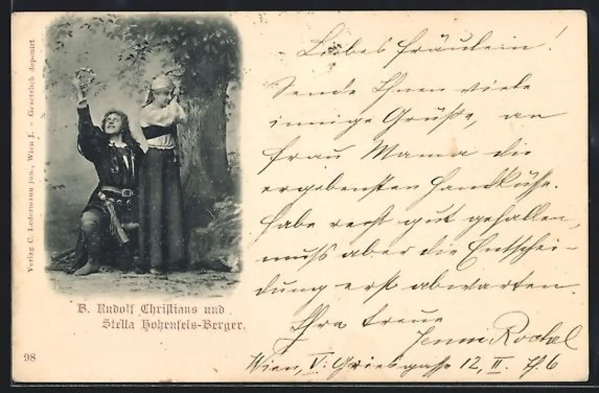 AK Opernsänger B. Rudolf Christians und Stella Hohenfels-Berger in Kostümen