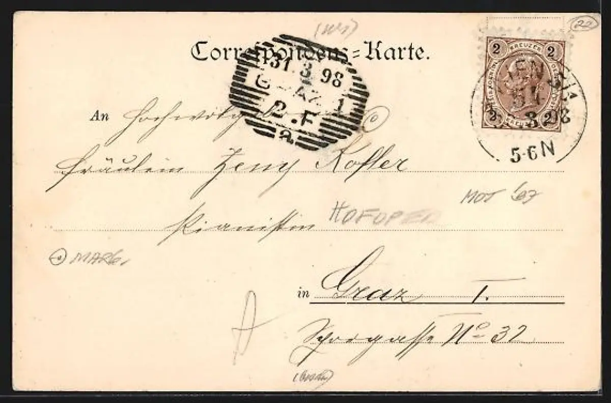 alte Ansichtskarte, gelaufen 1898, guter Zustand
