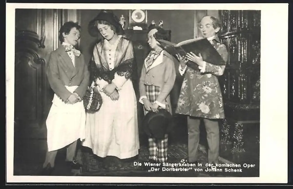 AK Opernsänger Die Wiener Sängerknaben in der komischen Oper Der Dorfbarbler von Johann Schenk