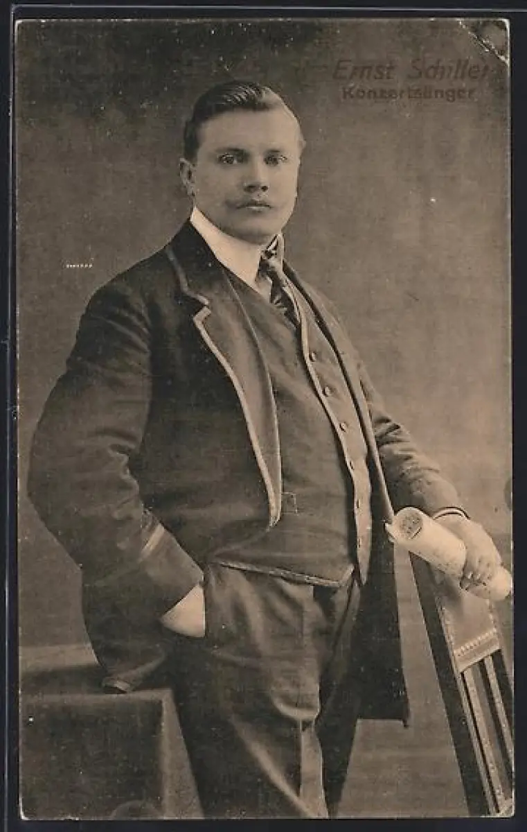 AK Opernsänger Ernst Schiller mit Notenblatt in der Hand