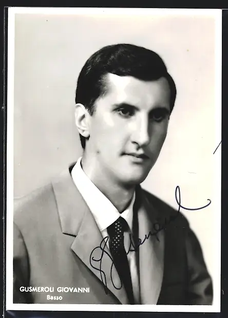 AK Opernsänger Gusmeroli Giovanni im gruen Anzug, mit original Autograph