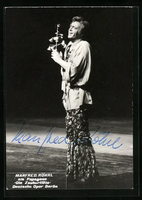 AK Opernsänger Manfred Röhrl als Papageno in Die Zaueberflöte, mit original Autograph
