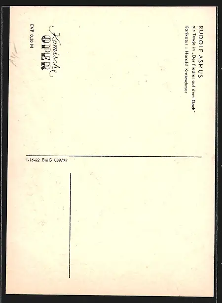 AK Opernsänger Rudolf Asmus als Tewje in Der Fiedler auf dem Dach, Karikatur, mit original Autograph