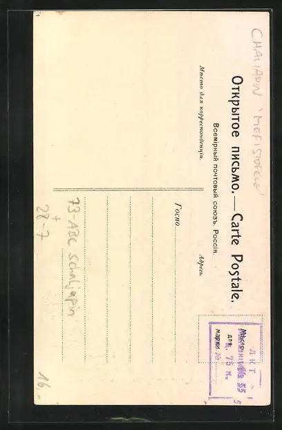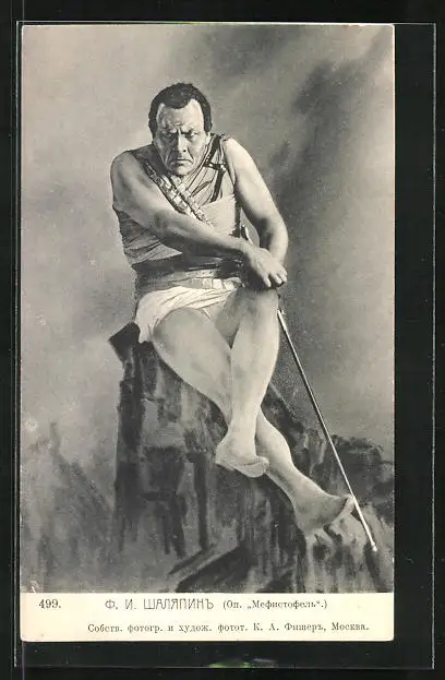 AK Opernsänger Schaljapin als düsterer Mephistopheles in Goethes Faust