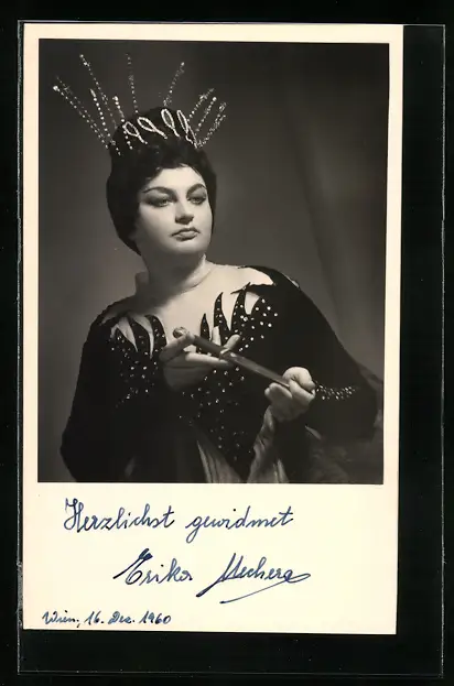 AK Opernsängerin Erika Mechera auf der Bühne, mit original Autograph