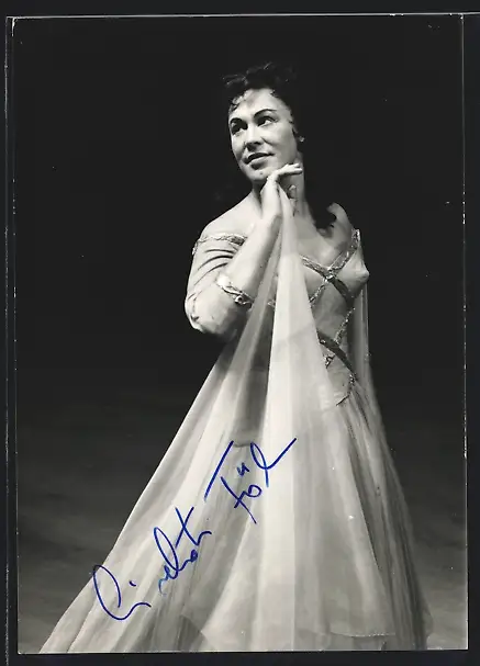 AK Opernsängerin Liselotte Fölser im hellen Kleid mit Schleppe, mit original Autograph