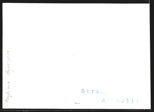 Personenbezogene Daten auf der Rückseite der Karte wurden durch blauen Textmarker unkenntlich gemacht. Die blauen Stellen sind auf die Vorderseite durchgeweicht und wirken sich negativ auf das Postkartenfoto aus