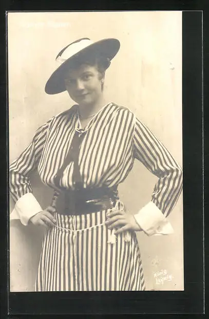AK Opernsängerin Margarete Rössner in gestreiftem Kleid