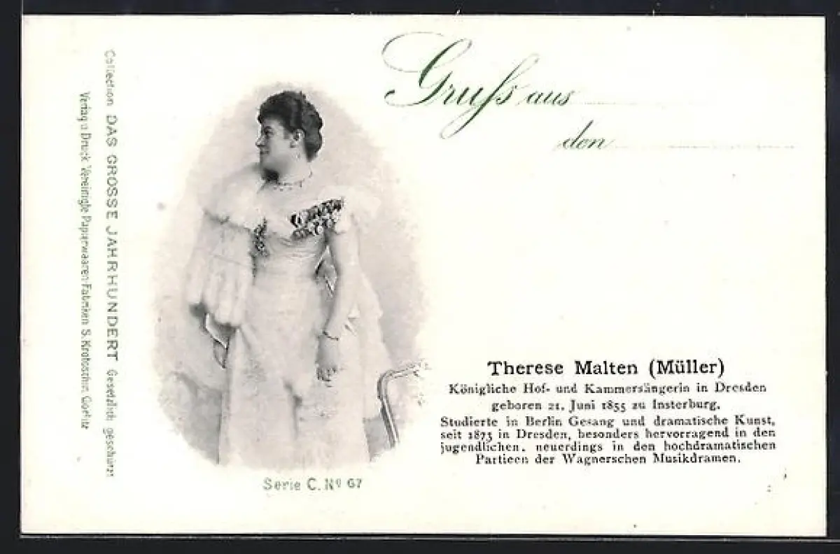 AK Opernsängerin Therese Malten in elegantem Kleid