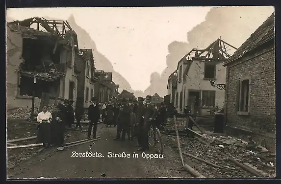 AK Oppau, Zerstörte Strasse nach einer Explosion