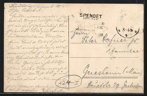alte Ansichtskarte, gelaufen 1920, Briefmarke entfernt, rückseitig Oberflächenschaden, guter Zustand