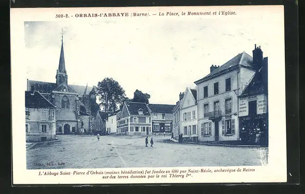 AK Orbais-l`Abbaye, La Place, le monument et l`Eglise
