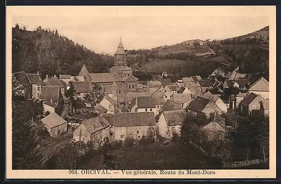 AK Orcival, Vue générale, Route du Mont-Dore