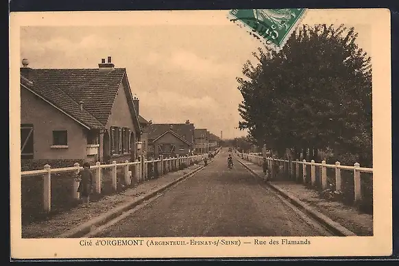 AK Orgemont, Rue des Flamands avec vue sur les maisons et un cycliste