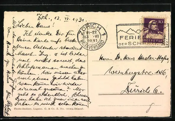 alte Ansichtskarte, gelaufen 1931, guter Zustand