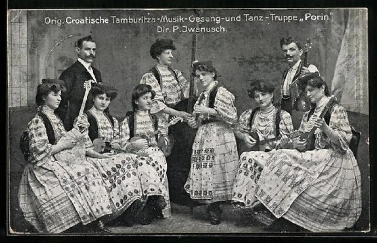 AK Orig. Croatische Tamburitza-Musik-Gesang- und Tanz-Truppe Porin, Dir. P. Iwanusch