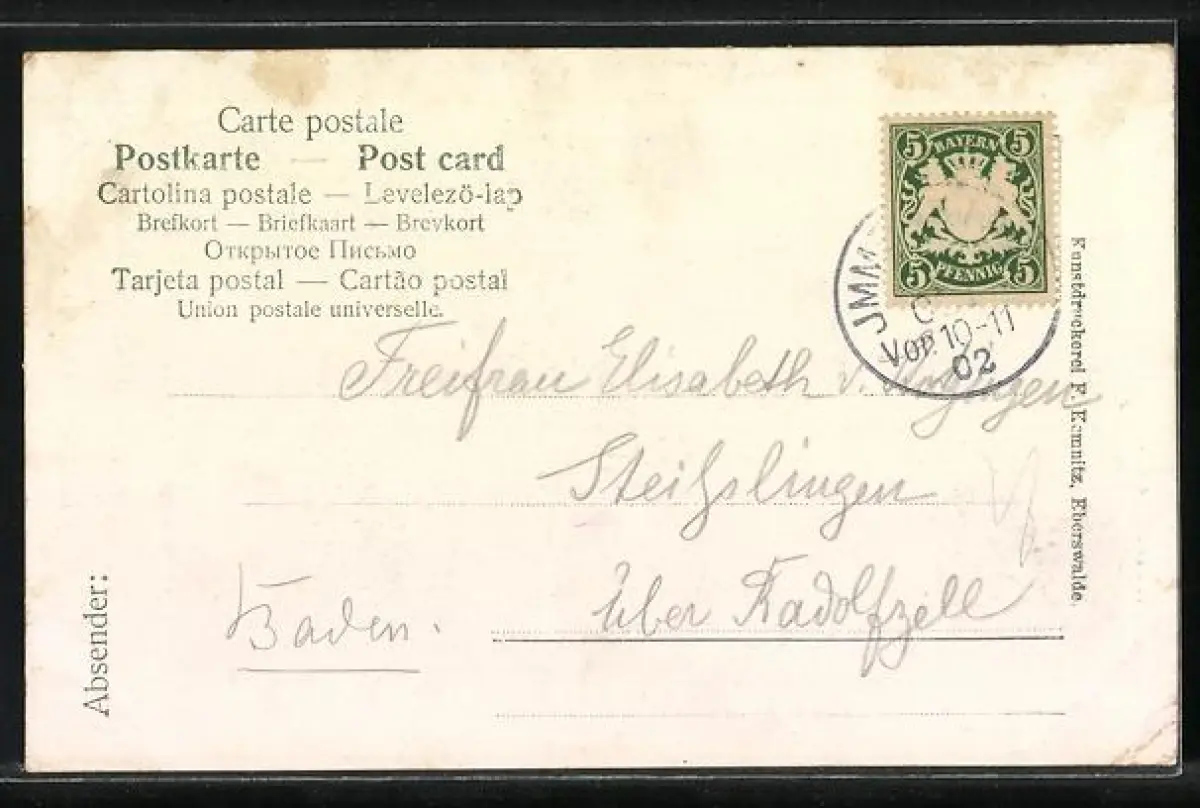 alte Ansichtskarte, gelaufen 1902, Eckknick unten li., guter Zustand